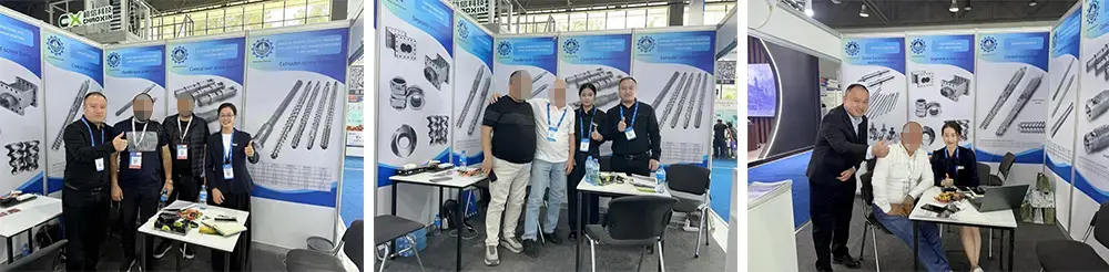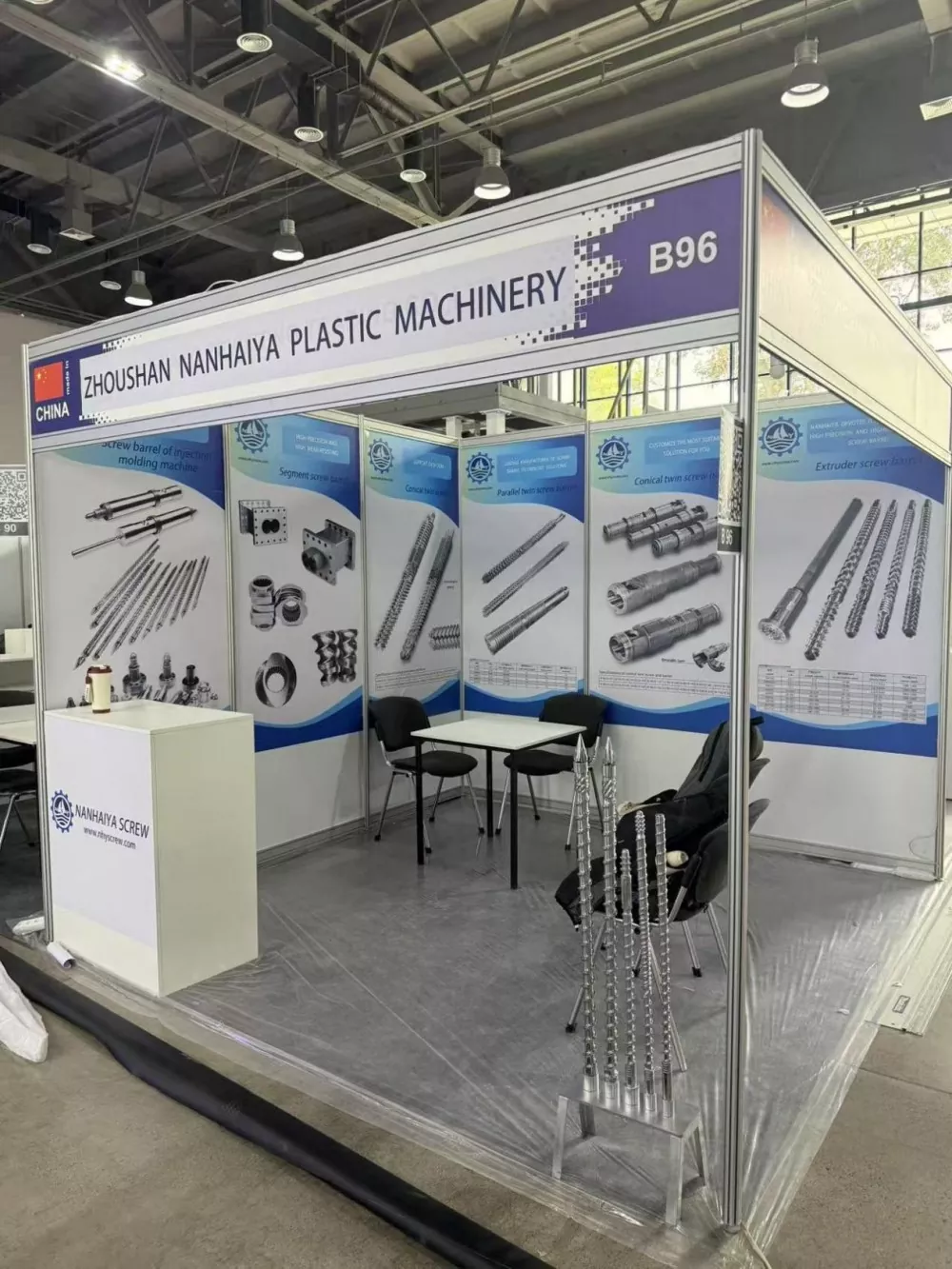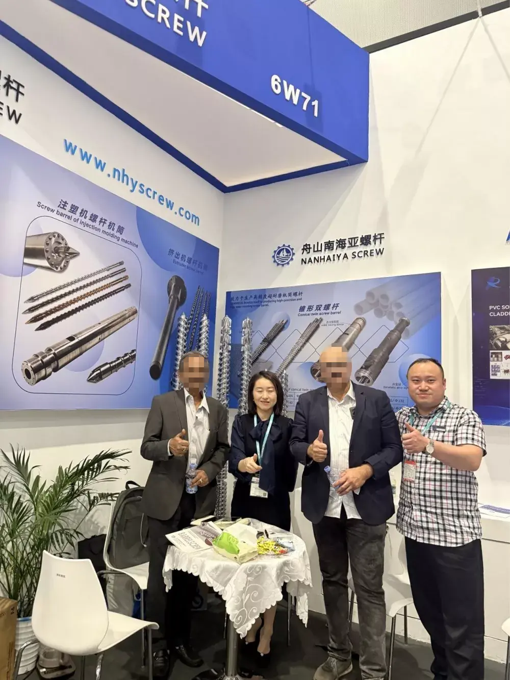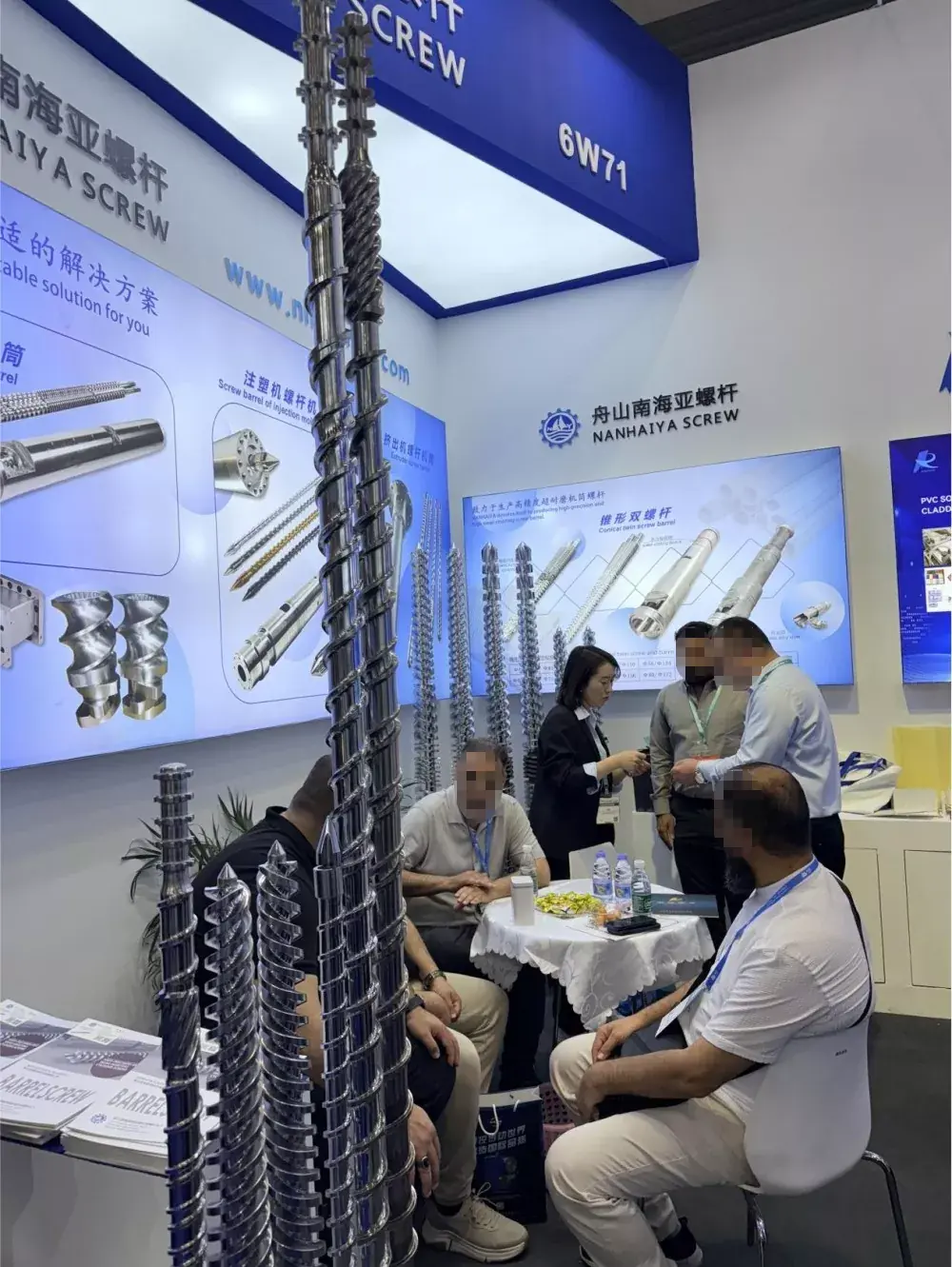 Potengera zomwe msika waku Central Asia, Nanhaiya adawunikiranso luso lake lothandizira. Kuyambira zomangira zazing'ono (Ø15mm) mpaka migolo ikuluikulu (Ø940mm), komanso kuchokera ku zida zodziwikiratu kupita ku makina apadera opangira PE, matabwa apulasitiki, ndi PVC, kampaniyo imapereka mautumiki osiyanasiyana, kuyambira kapangidwe ka malingaliro mpaka kumaliza zida za mzere wopanga, wogwirizana ndi zosowa za makasitomala. Pachiwonetserochi, a Nanhaiya adakwaniritsa mgwirizano woyamba ndi opanga mapulasitiki aku Uzbek. Maphwando awiriwa azikambirana mozama za kukweza kwa screw ndi migolo ya zida zawo zopangira.